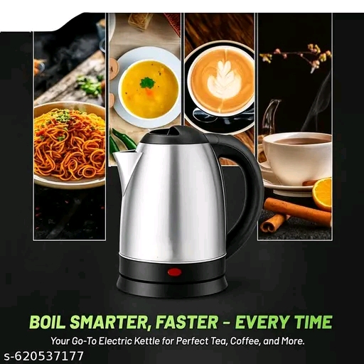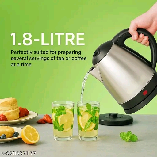 Premium 1.8L Silver Electric Kettle with 1500W fast heating. Auto cut-off for safety, stainless steel-touch handle. Ideal for tea, coffee, noodles & hot water – quick, safe & stylish! ⚡