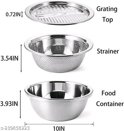Be the first to review “3 in 1 Stainless Steel Basin Grater Colander with Lids, Salad Mixing Bowls with Strainers, Cheese Cutter Slicer Basket for Vegetables, Rice, Food Washing, Shredding Set for Cooking (Set of 3)”