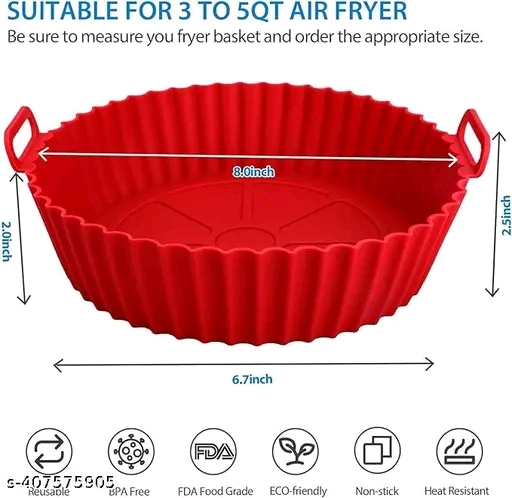 Product Name: BIGMOTHERS Washable Air Fryer Silicone Pot with Ear Handles, Air Fryer Liner Silicone Baking Tray Easy to Clean, 6.5 in Bottom, Nonstick Reusable Air Fryer Basket, Heat Resistance Pack of 1