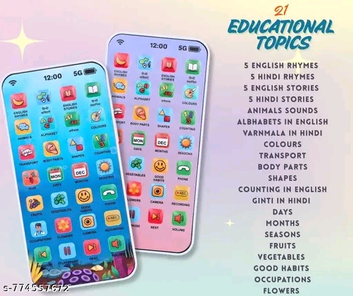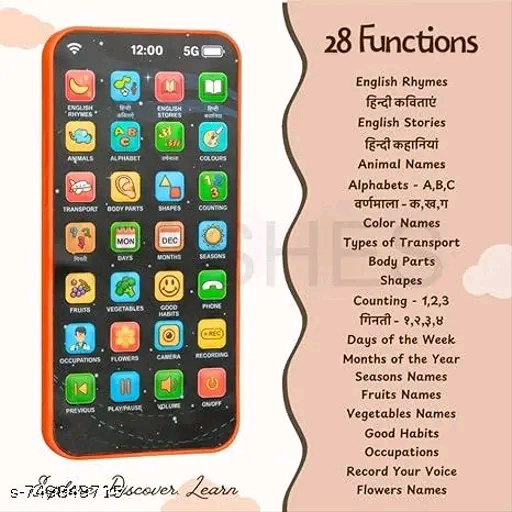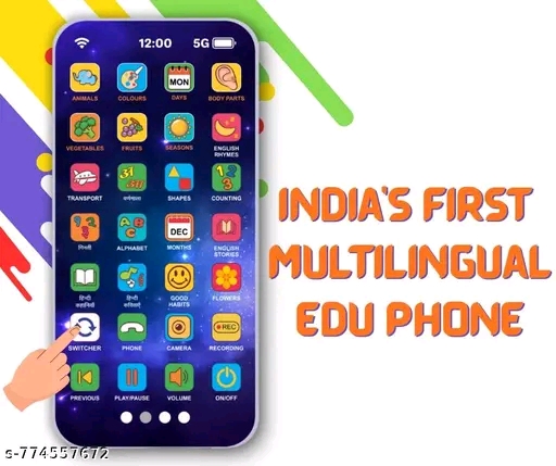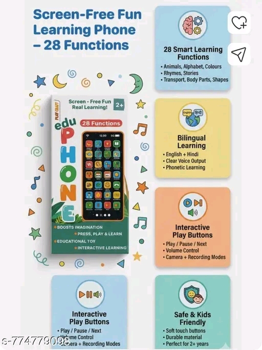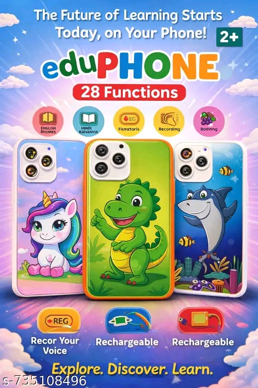 EduPhone Screen-Free Learning Toy Phone for Kids | 28 Functions | Type-C Charging | Talking Educational Mobile Toy (2+ Years) (Hindi & English Version)