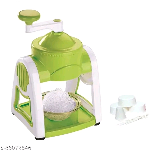 Manual Gola Maker with Slush Maker and Ice Crusher Made from Virgin Plastic & smooth finish makes it super safe. The perfect staple in your kitchen safe to be washed in your dishwasher, to rush anywhere for your favorite gola, just swish swap and it’s done. High Grade Mirror Finish Makes Them Look Quite Elegant Material. Plastic with hardened Stainless steel. Rust Resistant, Handy, non- electric appliance, Portable thus can be used outdoors as well. Components Included: 1 Ice Gola & Slush Maker, 3 Ice-Bowls, 1 Glass, 6 Reusable Sticks and 1 Ice Snow Dish.
