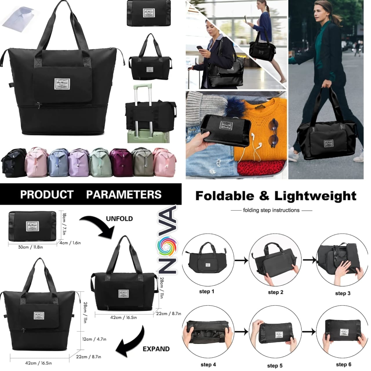 Large Capacity Folding Travel Bag, Waterproof lightweight, Designer bag handbag for ladies Luggage duffle Bags, Carry on Luggage with Fixed Strap, Foldable Bag, fashion everyday ladies handbag