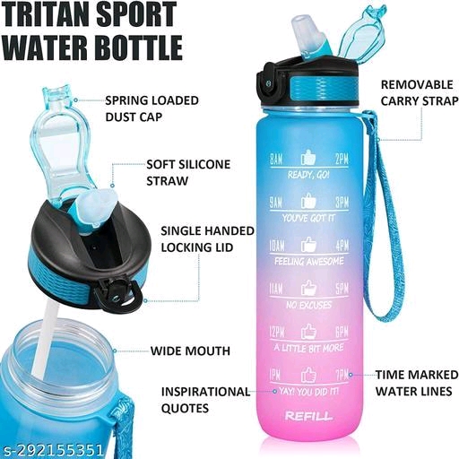 Name: MOTIVATION WONDERFUL WITH TIME MARKER WATER BOTTLE UNBREAKABLE SILICON WATER BOTTLE 1 LTR WITH TIME MARKER LEAKPROOF DURABLE IN MULTIPLE COLOUR (PACK IN 1 PCS)