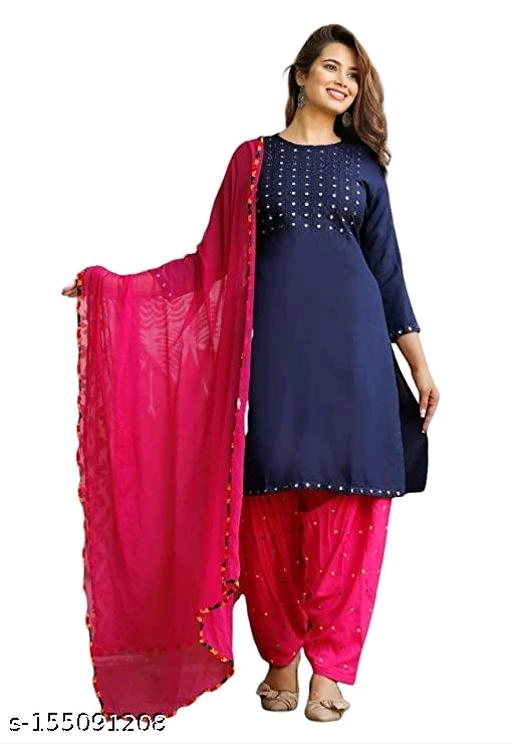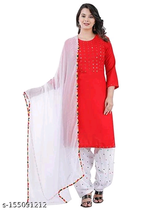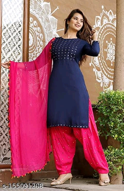 Reesho Women Rayon Kurti and Patiala Set Dupatta Sets