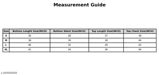 S (Top Chest Size: 38 in, Top Length Size: 27 in, Bottom Waist Size: 28 in, Bottom Length Size: 36 in)