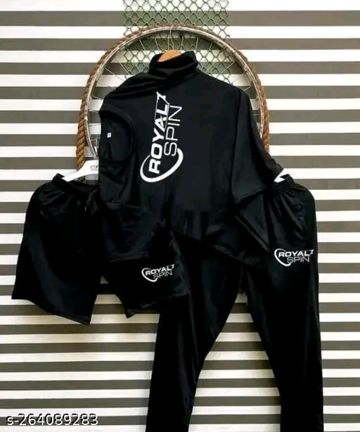 Royal spin branded trackpant tshirt short for men . fabric is polyester lycra very soft. men wear to be a regular gym yoga and other sportswear locations to wear in this trackpants. trackpant need no iron. and all type washing like( machine wash hand wash ) wash to very easy.