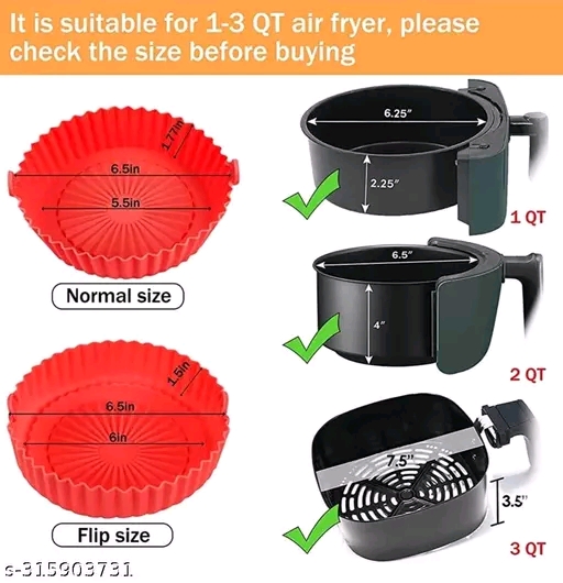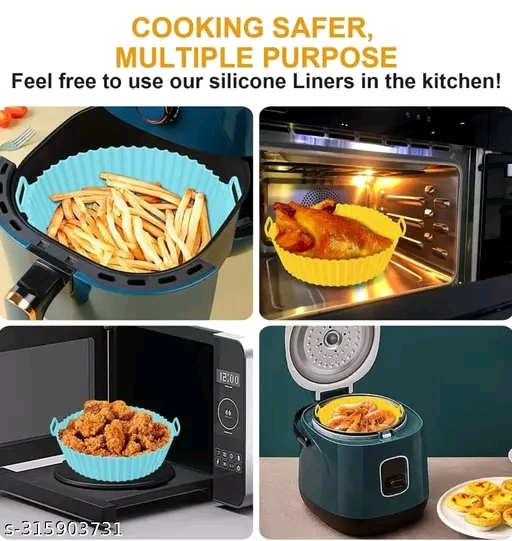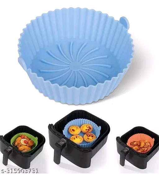 Silicon Air Fryer Tray , Quantity :- 1 Piece , Color ;- Multicolor , Material :- Silicon , Size :- Top 16.5 cm/Bottem 13.5 cm , Weight :- 58 gram.