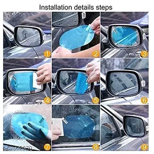 Easy Installation: Just take a few minutes to install it to your Rearview Mirror directly, squirt a little water on the mirror,install the protective film to the mirror and adhere it, then flatten it with a small scraper, quick and easy Safe Driving: Anti-fog, anti-glare, anti-mist, waterproof, rainproof, which effectively protects your driving safety in a rainy or foggy day Universal Design?The car mirror film is suitable for all standard size car rearview mirrors, such as cars, buses, off-road vehicles, taxis, trucks, trailers, motors, motorcycles, etc. It is also suitable for bathrooms, mirrors, Makeup mirror and other glass. Perfect Protection Film : Shield and protect your Rearview Side Mirrors from unwanted scratches, smears, dust and dirt, so as to keep your rearview mirror clear all the times.High strength and high transmittance