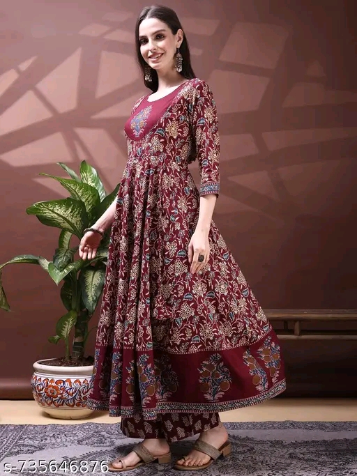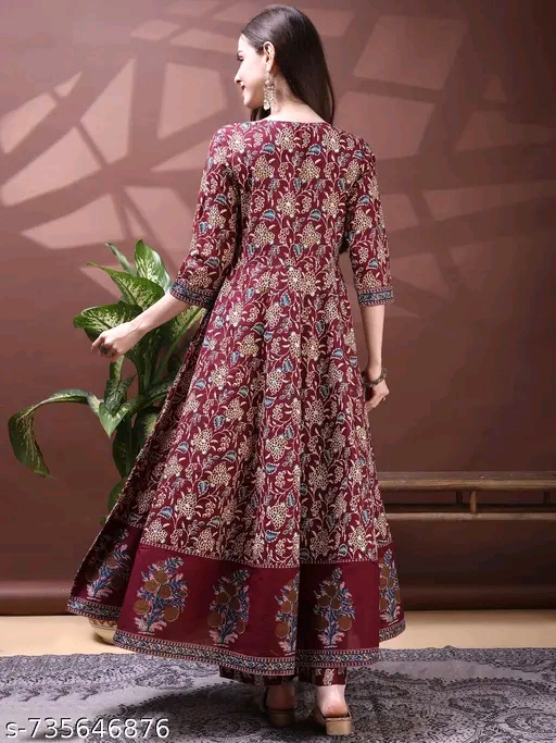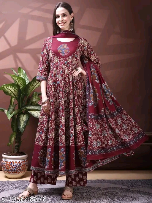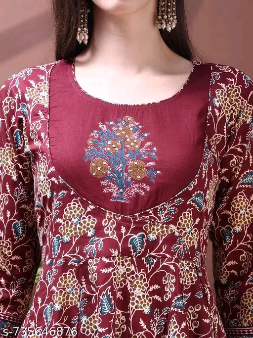 Be the first to review “Wine Pure Cotton Embroidered & Floral Printed Anarkali Kurta with Pant & Dupatta”